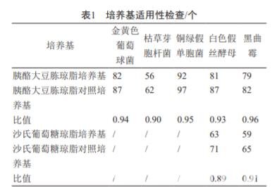 實(shí)驗(yàn)所用菌株為即用型定量菌株,金黃色葡萄 球 菌 CMCC(B)26003(批號 20181008);枯 草 芽 胞 桿 菌 CMCC(B)63501(批號 20180908);銅 綠 假 單 胞 菌 CMCC(B) 10104(批號 20180809);白 色 假 絲 酵 母 CMCC(F) 98001(批號 20180904);黑 曲 霉 CMCC(F) 98003(批號 20180817)。以上菌株均為 3 代,全部購 自浙江泰林生物技術(shù)股份有限公司。其凍干粉直接用商 品配套溶液復(fù)溶,配制成菌懸液濃度為每 0.1 ml 不超過 100 cfu。 胰酪大豆胨瓊脂培養(yǎng)基(批號 20181025)和沙氏葡 萄糖瓊脂培養(yǎng)基(批號 20170837),均購自浙江泰林生 物技術(shù)股份有限公司 ;胰酪大豆胨瓊脂對照培養(yǎng)基(批 號 135025-201603)和沙氏葡萄糖瓊脂對照培養(yǎng)基(批 號 135013-201502),購自中國食品藥品檢定研究院。