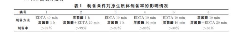 基因組shuffling過(guò)程中的關(guān)鍵步驟在于原生 質(zhì)體制備與再生,本實(shí)驗(yàn)中首先確定了制備和再生的培養(yǎng)基的種類?方法和滲透壓穩(wěn)定劑.另外酶解 的溫度?時(shí)間和酶解前預(yù)處理的因素見(jiàn)表1所示. 結(jié)果表明,在制備原生質(zhì)體時(shí),EDTA 預(yù)處理細(xì)胞 可以提高細(xì)胞壁酶解的效率.通過(guò)實(shí)驗(yàn)結(jié)果,本文 最終選擇的滲透壓穩(wěn)定劑為0.3mol/L的甘露醇, EDTA 預(yù)處理10min,酶解時(shí)間30min,原生質(zhì)體 再生采用自然擴(kuò)展法。
