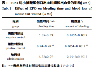 用斷尾法測定 EPO 對小鼠體表創口出血時間和出血量的影響。
